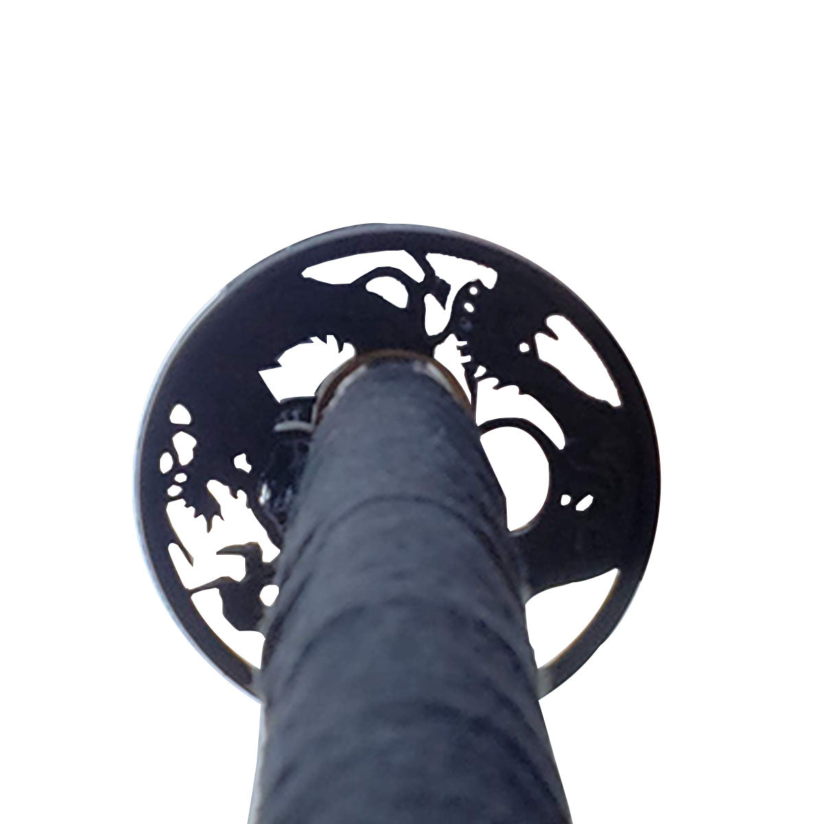 The detailed Maru Gata style iron tsuba depicts the fierce sea god Watatsumi who was one of the legendary dragons of Japan. Watatsumi was known as the guardian of the Shinto religion who welcomed humans into his kingdom when they fell deep in the ocean. On the blade lies the beautiful engraving of the sea god Watatsumi which is etched in by world-renowned master sword smiths. The wood handle is real ray skin wrapped in traditional black cotton cord while the high gloss saya makes the Watatsumi katana a great piece to your collection.